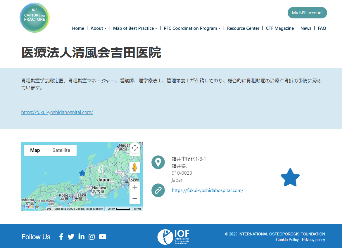 ※当院は国際骨粗鬆症財団(IOF)のCapture the Fractureプログラムにも参加しております。
